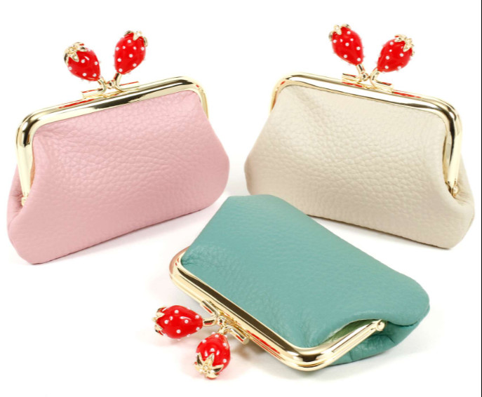 バレンタインデーに合わせてキュートな小銭入れが登場。かわいらしさに遊び心が加わった、いちごモチーフの口金がポイントです。