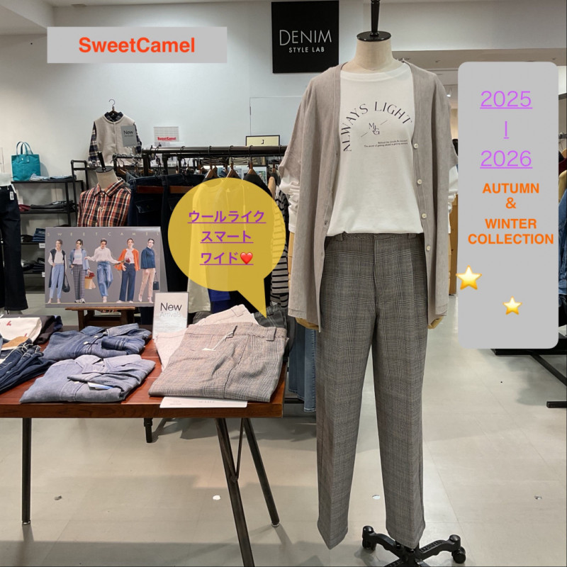 SweetCamel❤️新作スマートワイドのご紹介です 昨年よりワイド感UPしました センタープレス仕上げで脚ラインスッキリ どんなトップスにも合わせやすいベーシックなデザインで通勤着としても使えます 3階デニムスタイルラボ👖