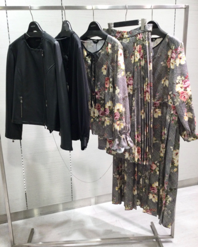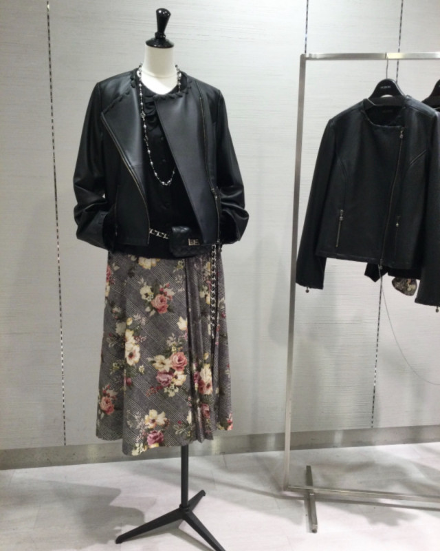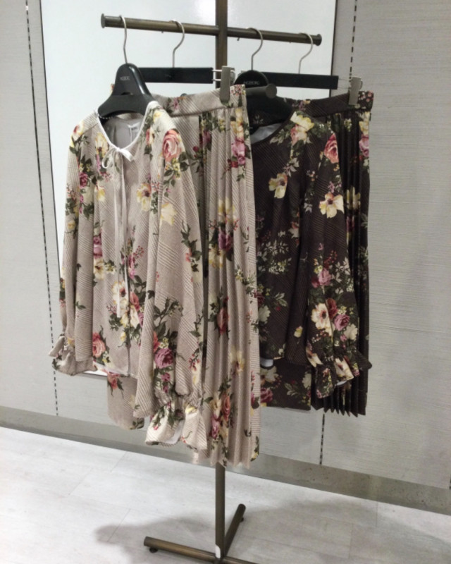 チェックブーケ柄ブラウス、スカート、ワンピース