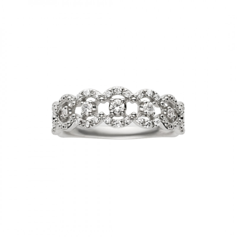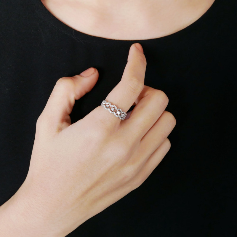 上品な美しいレースをかたどり、手元を女性らしくエレガントに演出するリング。