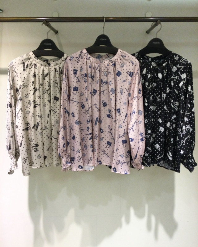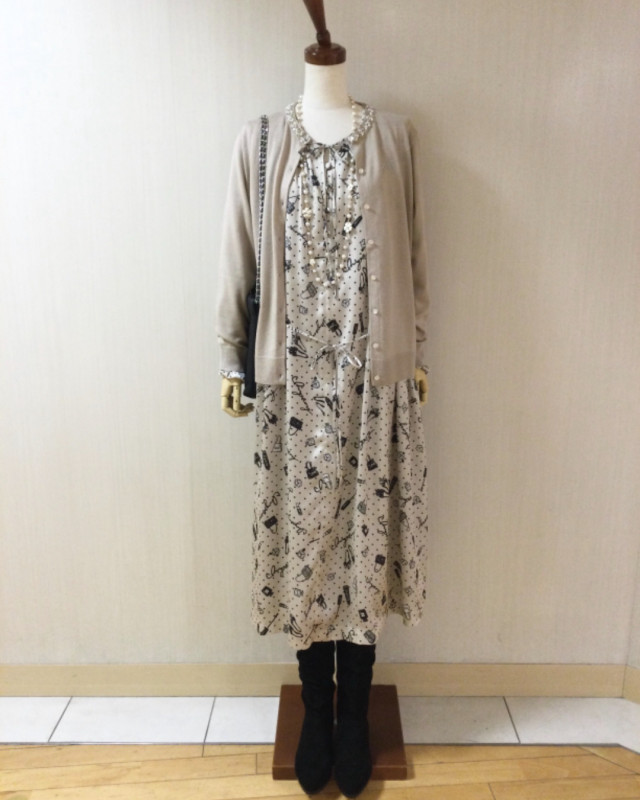 ドットを背景に、カメリアや香水瓶などのモチーフを散りばめました。