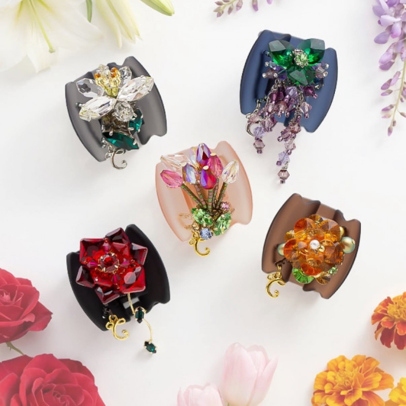 スワロフスキー®・クリスタルで描く立体的な花モチーフのきらめきが、装いを瑞々しく華やかに彩ります♪