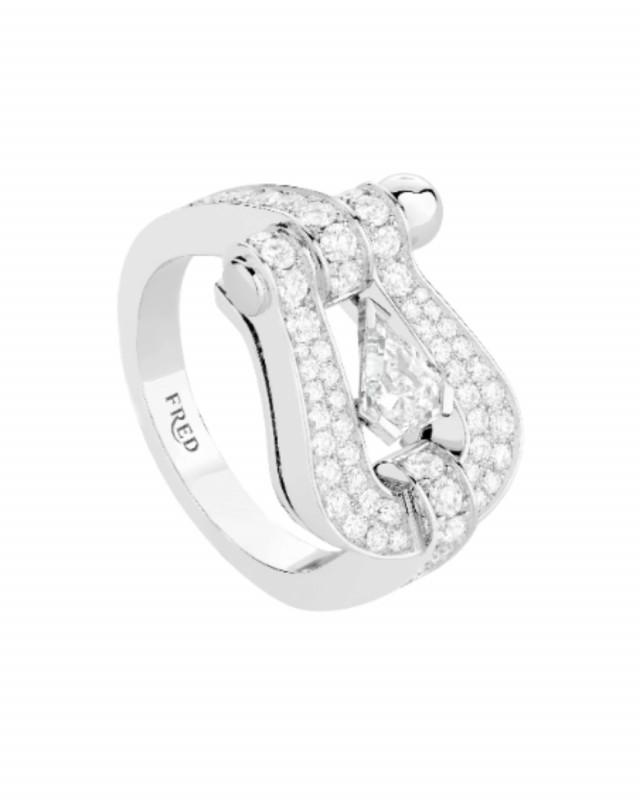 センターストーンのフレッド ヒーローカット ダイヤモンドは、メゾンの創業年1936年の36ファセットで帆のようなデザインとなっています。