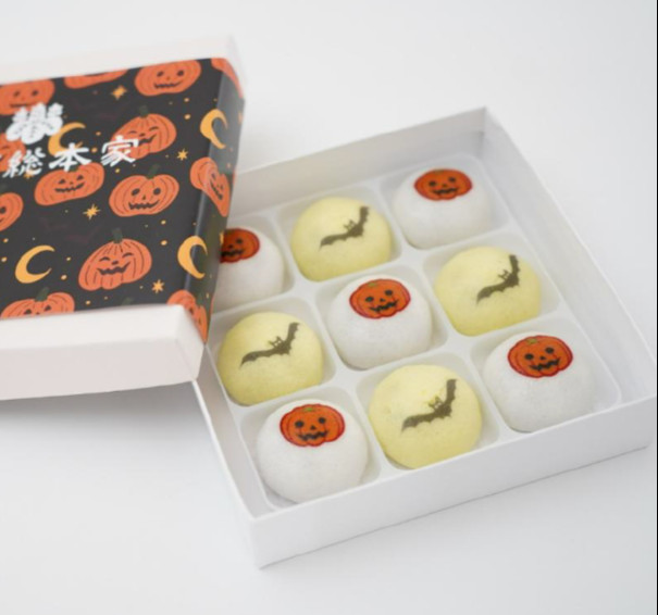 ハロウィンのイラストをほどこしたこの時期だけの限定薯蕷饅頭です。