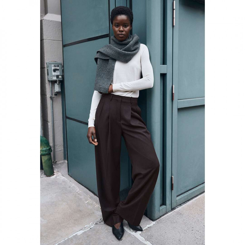 写真のアイテムはボリューム感とシルエットの美しさを両立したダブルプリーツパンツ。