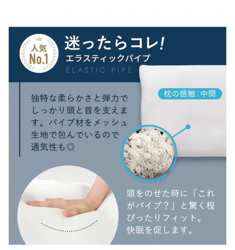 支え感と心地いいフィット感のある、柔軟性のあるパイプを使った枕です。