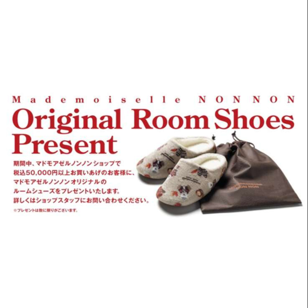 マドモアゼルノンノンオリジナルルームシューズをプレゼントいたします。