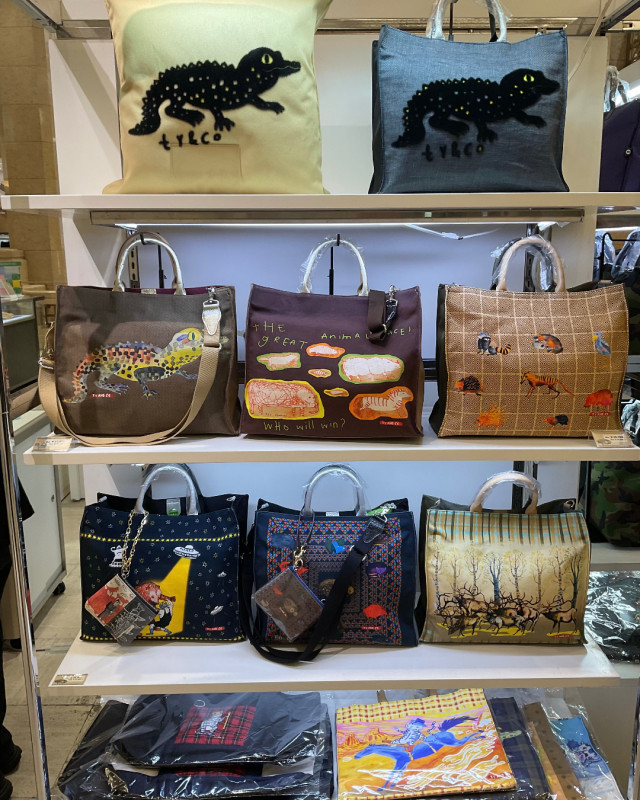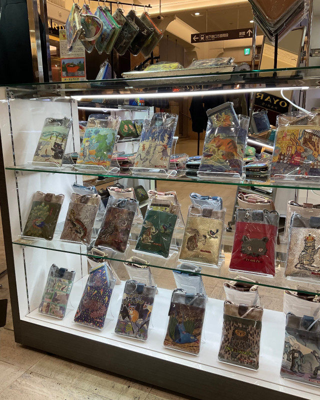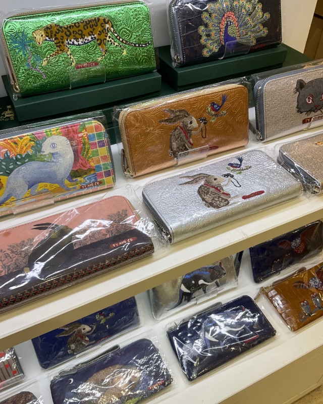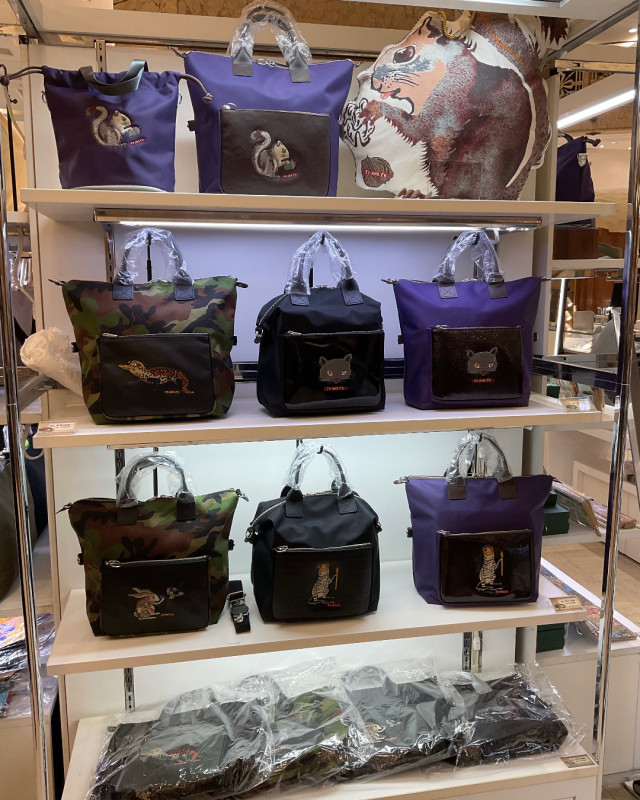 のイラストをデザインソースに、財布、革小物、バッグ、Tシャツなどを展開しております。