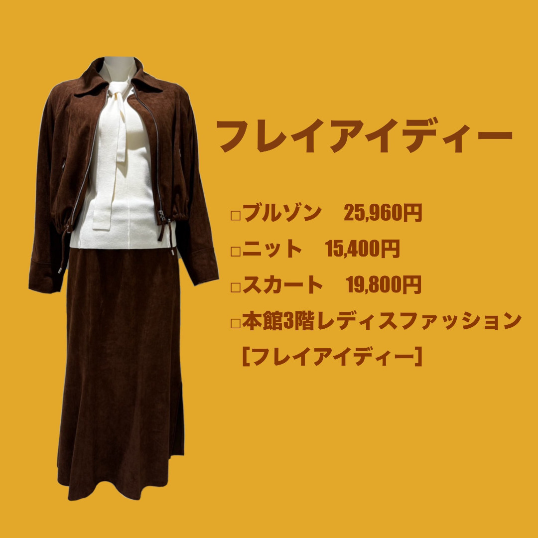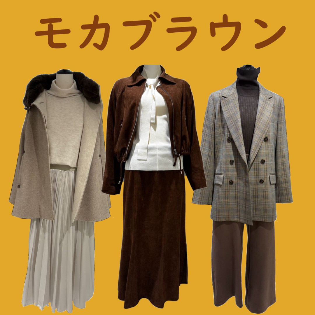 婦人服売場では秋にピッタリなモカブラウンのアイテムを取り揃えております。