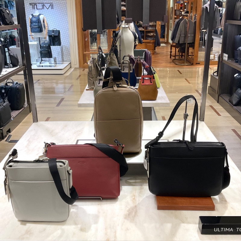 小型のシュリンクシボの革を使い、すっきりとしたシャープな印象のレザーショルダーシリーズ。