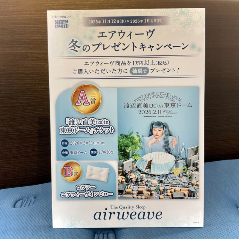 ⚫︎エアウィーヴ ベッドマットレスS4.0、M2.0、The airweaveを含む25万円(税込)以上ご購入の方