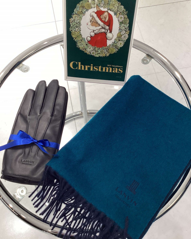 カシミヤマフラーとレザーグローブが取り揃っております。
