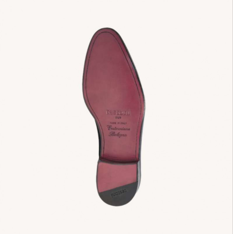 テストーニのドレスシューズは、サケットボロネーゼ製法による上質な履き心地と、繊細なステッチ技術が織りなす美しさを兼ね備えており、特別な夜にふさわしい一足です。