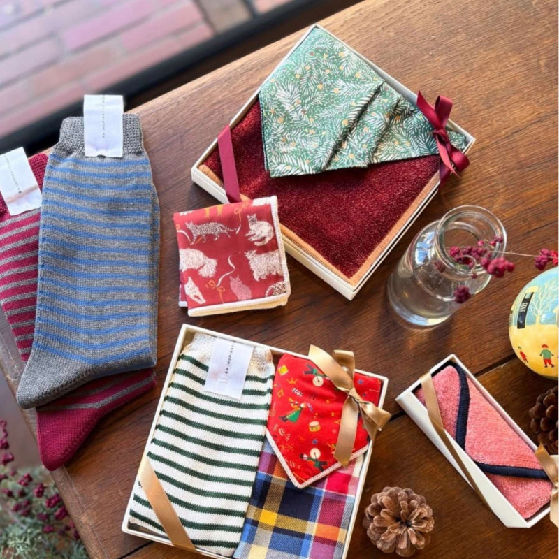 大切なひとの足元を包む靴下、 日常に控えめに寄り添うハンカチ。 心温まるギフトにぴったりな 新作の靴下やハンカチをご紹介します。