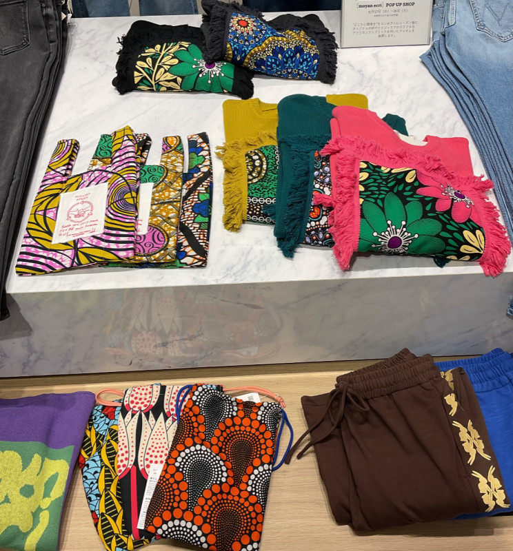 を”をコンセプトにオリジナルの柄やナイジェリアのカラフルなアフリカンファブリックを使用したアイテムを展開しています。