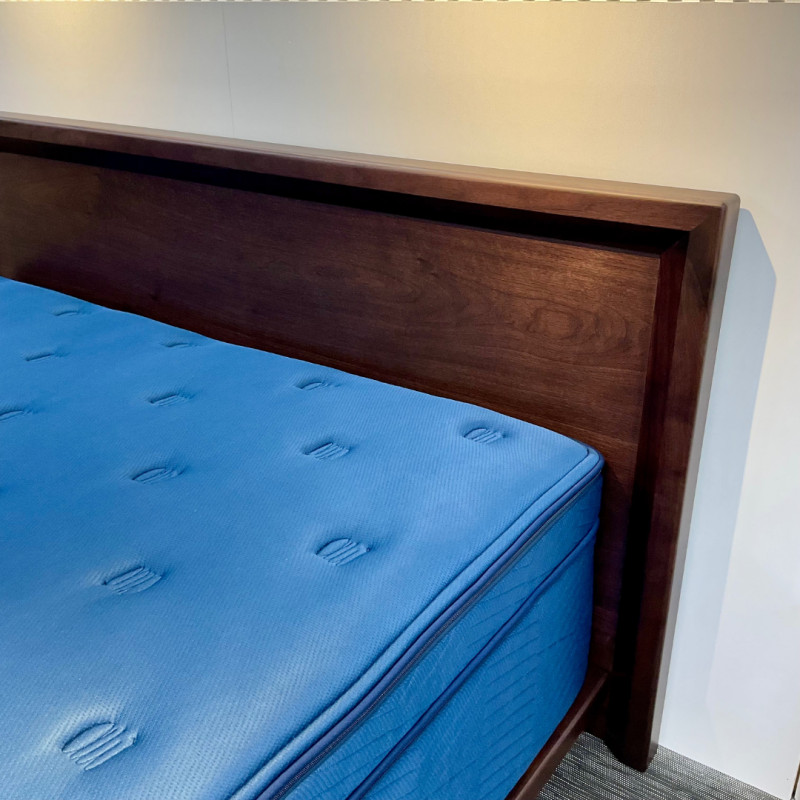 ウォールナット無垢材を使用したヘッドボードが上質な寝室を演出する、高級感のあるベッドフレーム。