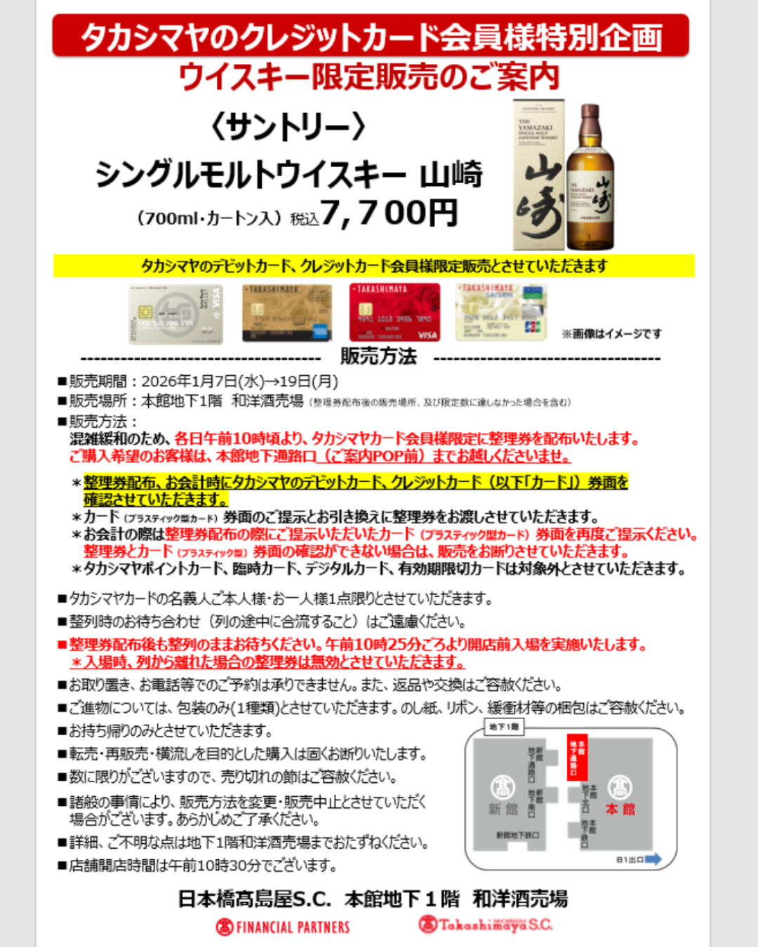 ■販売場所:本館地下1階 和洋酒売場(整理券配布後の販売場所、及び限定数に達しなかった場合を含め)