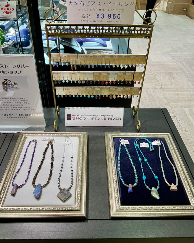 旅先で学んだ原石の研磨技術やジュエリー加工の技術を活かし、小さなアトリエで一つひとつ丁寧にジュエリーを制作しています。