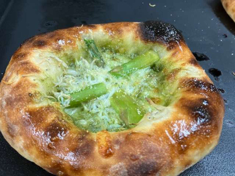 今回のイチオシはPIZZA大葉ジェノベーゼ(972円)全粒粉をあわせた風味豊かな生地に大葉ペーストと桜エビを載せました。