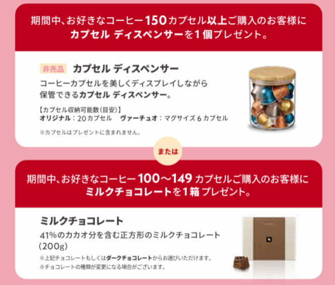 ※ネスプレッソ公式ウェブサイト、モバイルアプリ、フリーダイヤル、ネスプレッソブティックでキャンペーン終了時期が異なる場合がございます。ご了承ください。