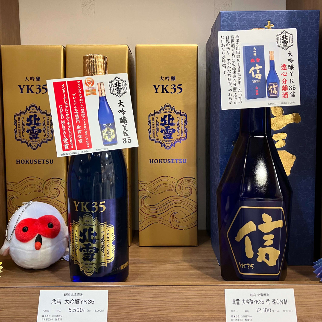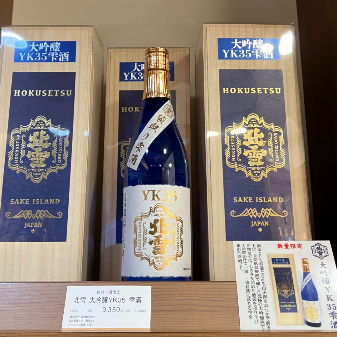 定番のYK35シリーズのほか、高速遠心分離機で搾った『大吟醸YK35 信』、季節限定しぼりたての『純米生原酒』『純米大吟醸 生原酒』、希少な佐渡産の酒米を使用した『純米大吟醸 越淡麗』など普段はお取り扱いのない商品もご用意しております。