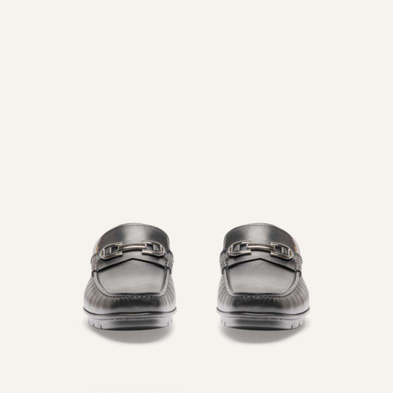 クラシックなバックルディテールを備え、非常に柔らかなスポーツナパカーフを使用したモカシンスタイルが新登場。