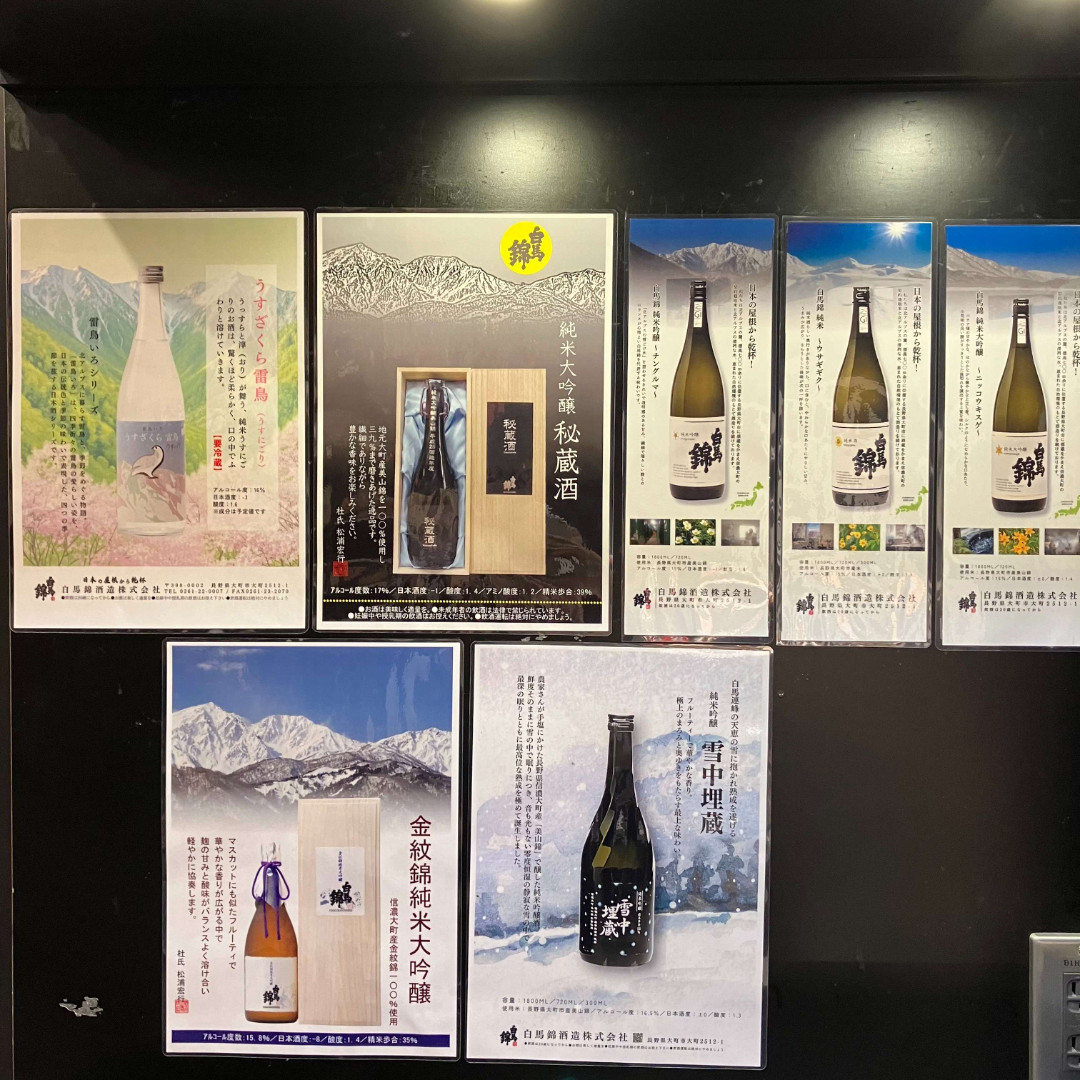 北アルプス周辺に自生する高山植物の名を冠した『ウサギギク』『チングルマ』『ニッコウキスゲ』などの純米酒シリーズ、世界に誇るパウダースノーの中で静かに眠らせた『雪中埋蔵』、フルーティーで華やかな香りの『金紋錦 純米大吟醸』、繊細でありながら豊かな香味の『純米大吟醸 美山錦 秘蔵酒』、美しく舞う雪のような見た目で淡くやさしい味わいの『うすざくら雷鳥 うすにごり』など、普段はお取り扱いのない商品も幅広くご用意しております。