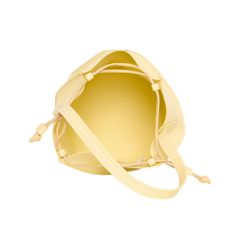 「TYPHON(タイフォン)」は、口元の巾着紐を引くことでフォルムが変化する、動きのある構造が特徴のショルダーバッグ。