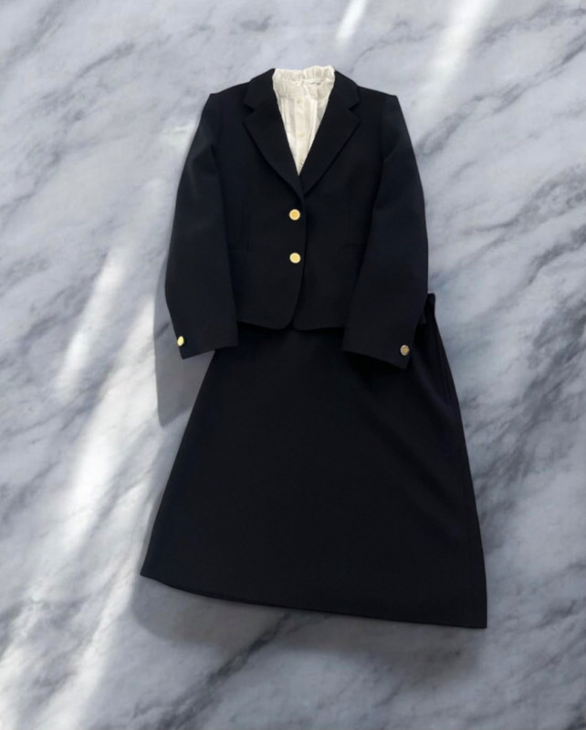 質感のあるツイードを用いたベーシックなジャケットとスカートです。