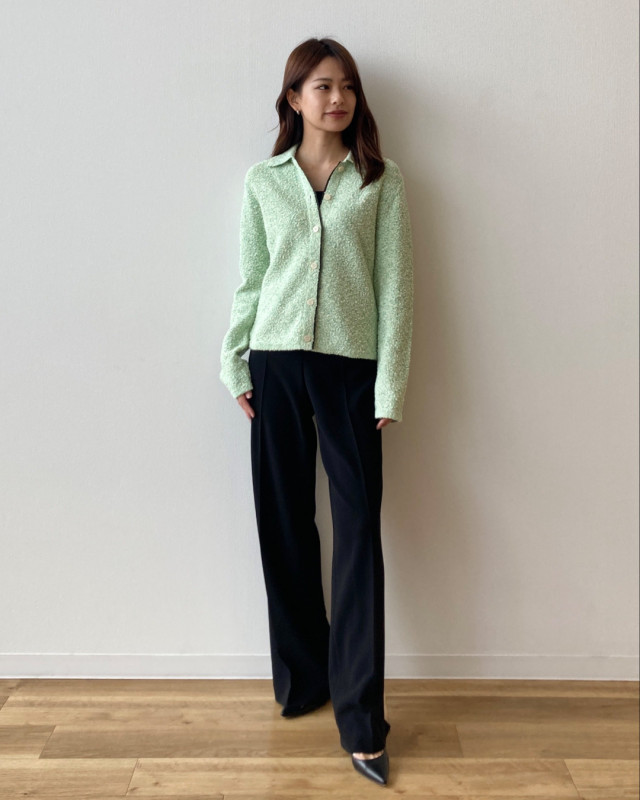 カーディガンジャケットは一枚でも羽織でも着回し可能。