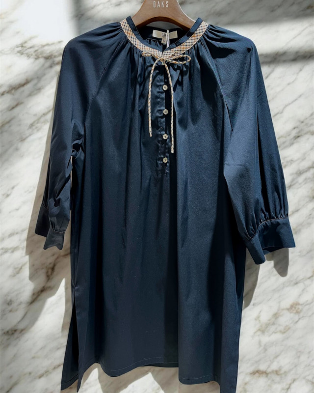 衿元と袖にギャザーを施し、柔らかな立体感を出したチュニックブラウスです。