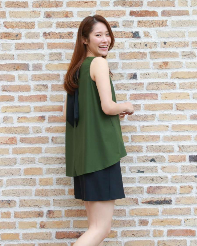 バックリボンでさりげない女性らしさを演出。