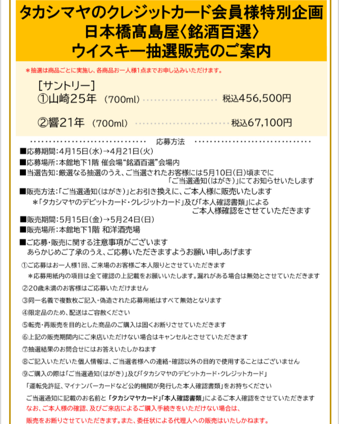 「銘酒百選」ウイスキー抽選販売のご案内