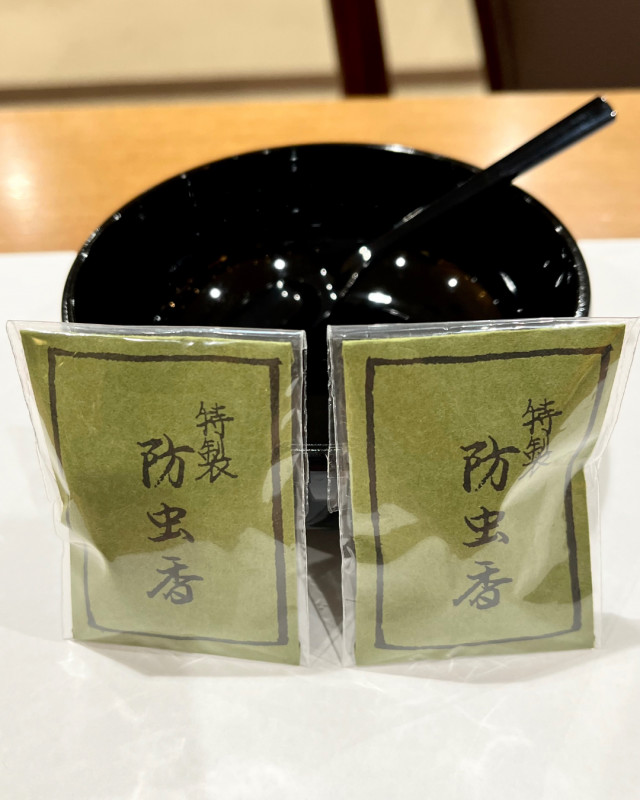 白檀を中心とした基本の香りをベースに、お好みの香原料を調合し衣類などにお使いいただける防虫香を作ります。