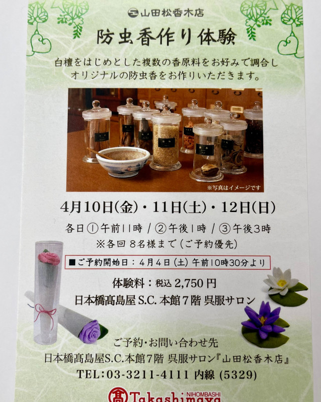 本館7階山田松香木店では「防虫香作り体験」を行います。