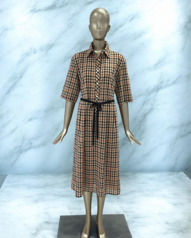 綿100%で、通気性がよく、ふんわりとした柔らかさがあります。長めの袖丈でがエレガントな雰囲気なワンピースです。
