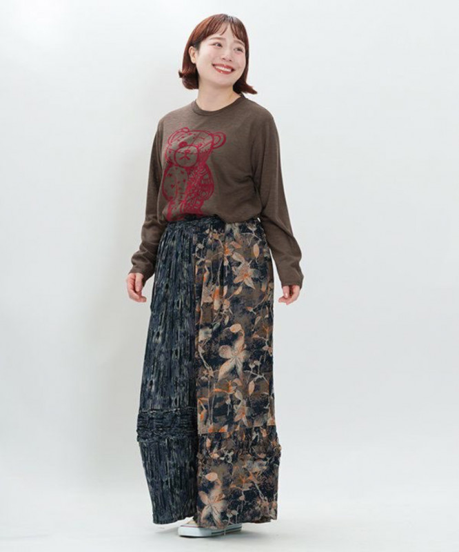 左右で柄を切り替え、プリントのコントラストを楽しめる仕上がりに✨
