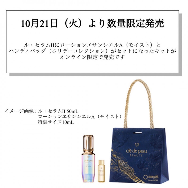 ル・セラムⅡ50mL(ホリデーコレクション限定パッケージを含む本体、レフィル)、または75mL(本体、レフィル)を購入で、ローションエサンシエルA(モイスト)特製サイズ10mLとホリデーコレクション限定ハンディバッグを進呈いたします。