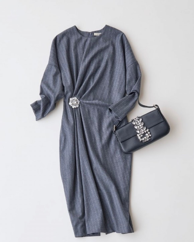 ドレーピングしたような女性らしい動きのあるワンピース。