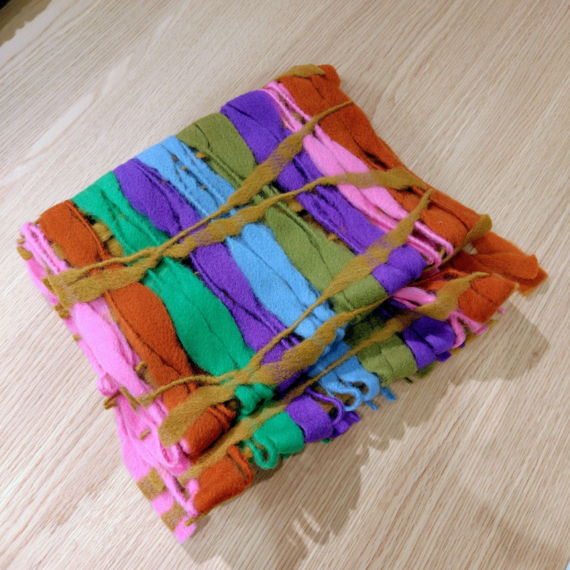 多色に染め上げたブークレー糸を経緯に並べて、針で突き刺して仕上げたフェルト生地です❇️
