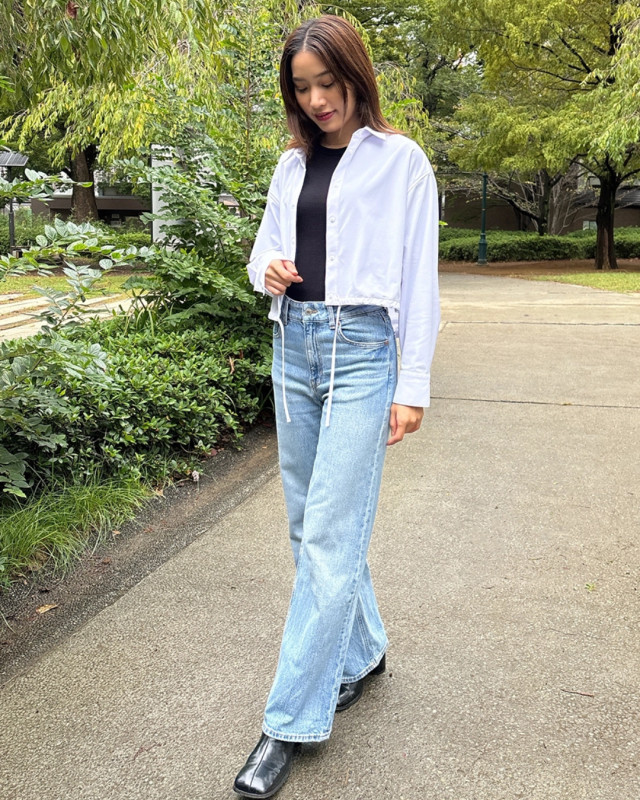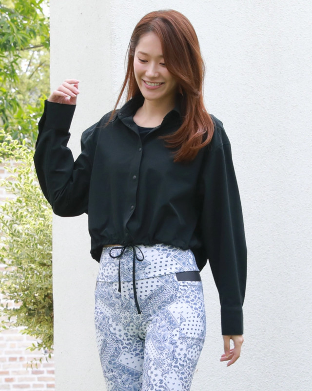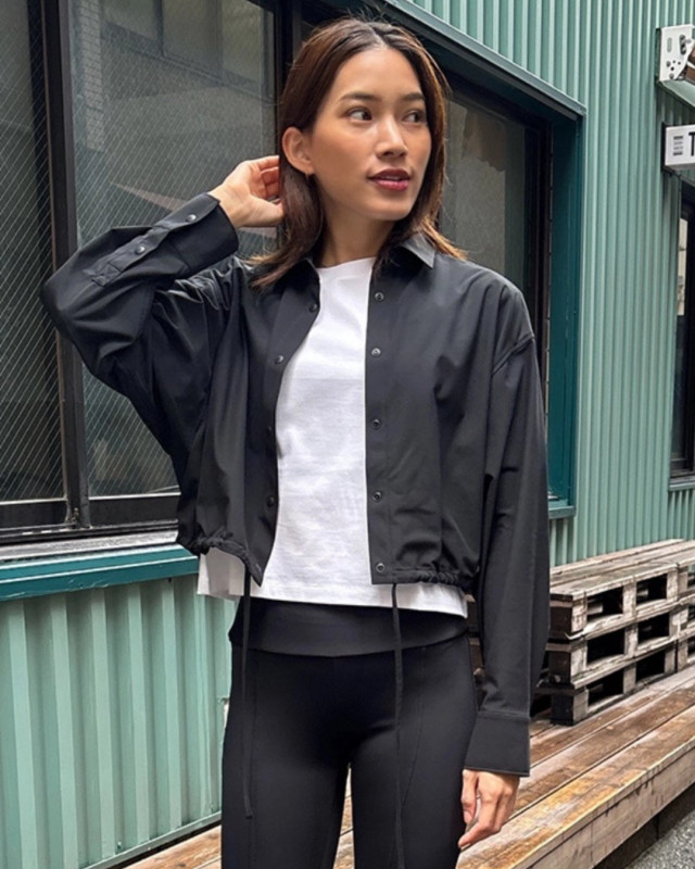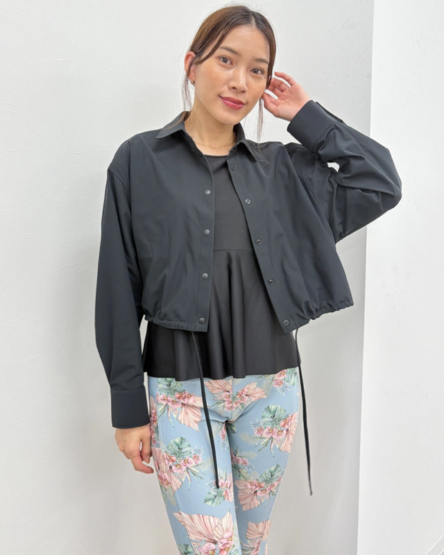 ボタンを開けサラッと羽織っても可愛いですが、ボタンを閉じ裾の紐を絞って結ぶと、ウエスト位置が上がりスタイルアップ効果もございます!