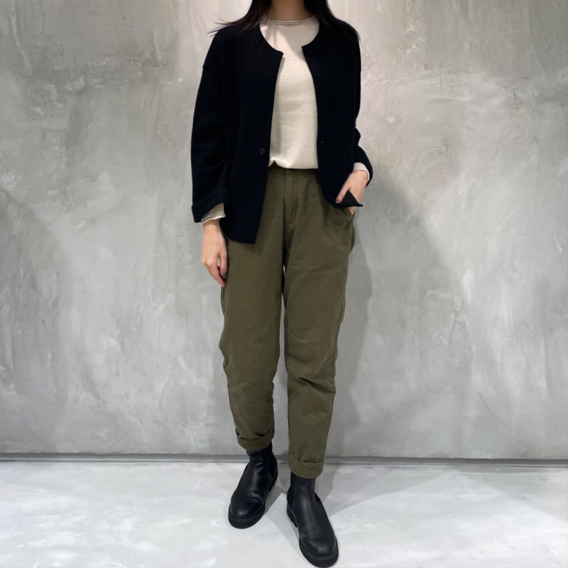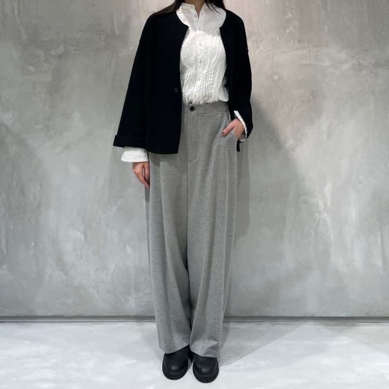 ボリュームのあるボトムスとのスタイリングがオススメです。