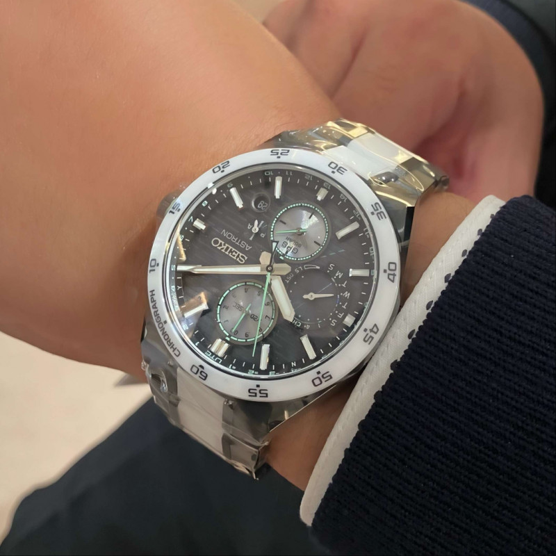 またチタンケースにホワイトセラミックスを合わせることで、異素材の融合を際立たせたコントラストのあるデザインに仕立てました。