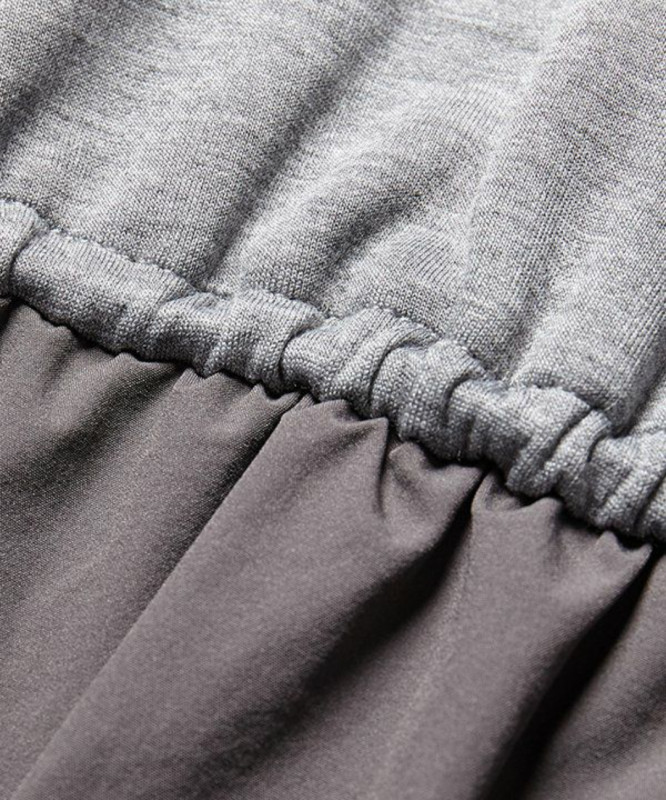 カットソーと布帛を組み合わせたデザインは軽くて扱いやすく、