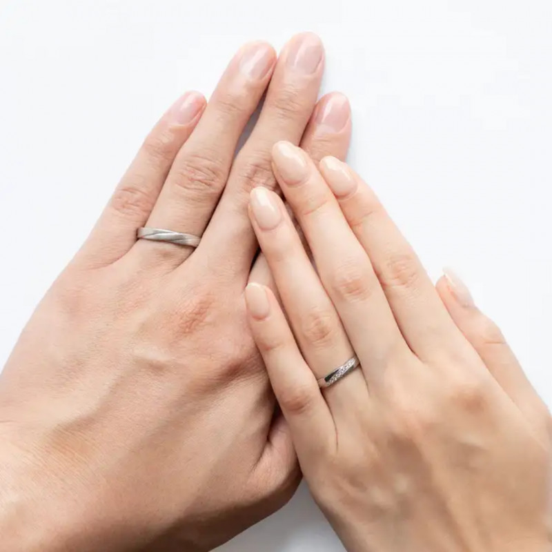 柔らかく編み込まれたロープをイメージしたフォルムが「ふたりの絆」や「永遠の繋がり」を想起させるマリッジリングです。