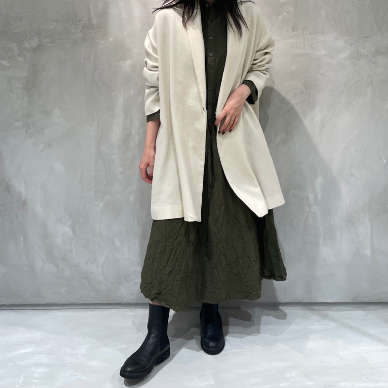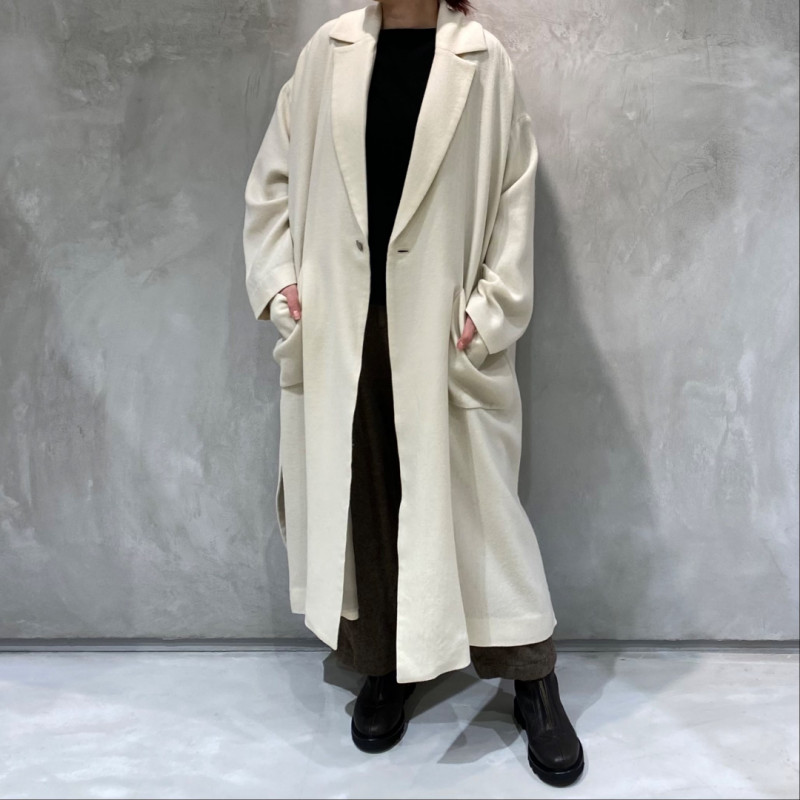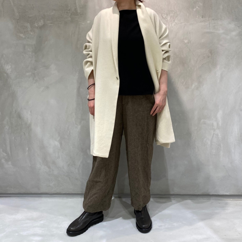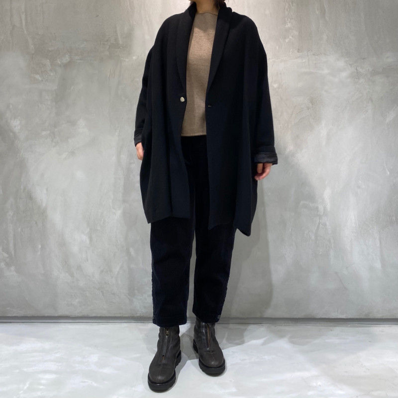 カシミヤの持つ高級感と柔らかさに、ツイル織りの丈夫さとしなやかさを兼ね備えた生地。軽さや暖かさはもちろん、リラックス感のあるフォルムを醸し出します。