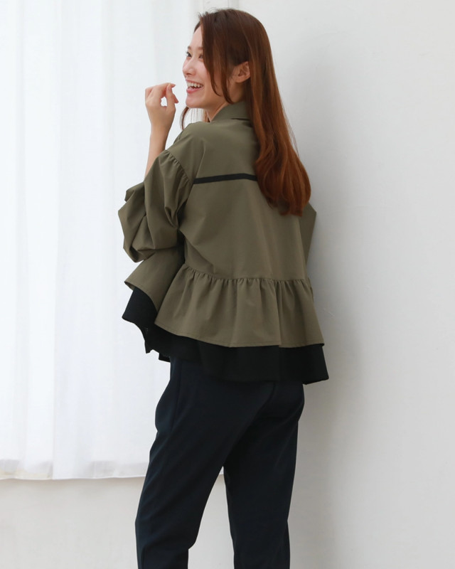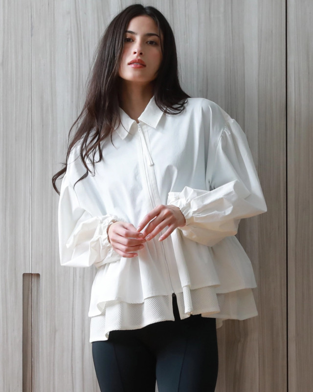 アウターは、バルーンスリーブとメッシュ素材を組み合わせたフリルやテープ使いが大人可愛いデザインになっています◎