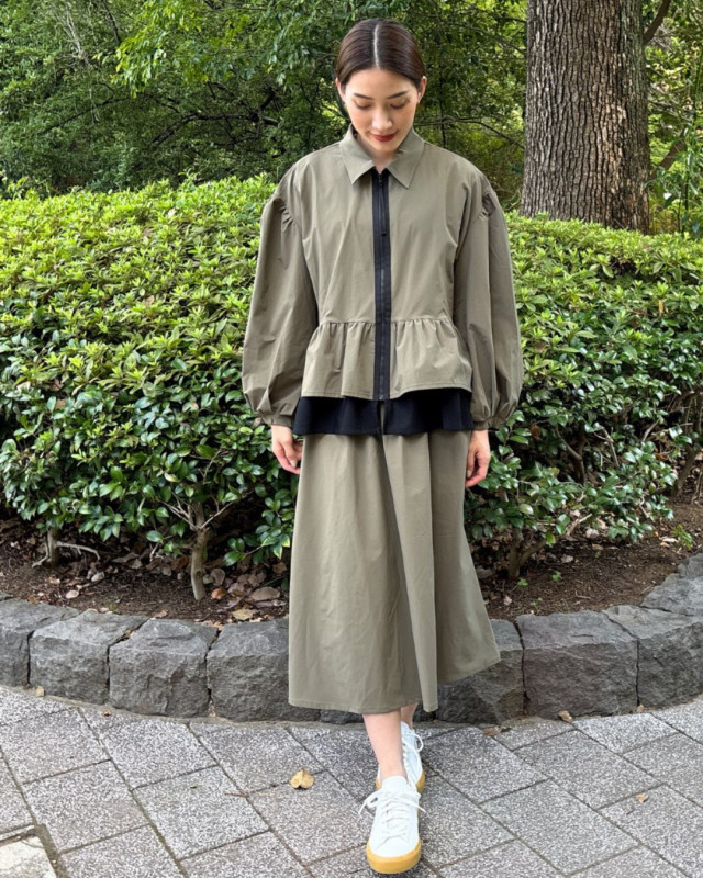 ライトアウター・スカートどちらもハリのある生地感なので、シワになりにくく機内着として、ご旅行でも使いやすく、しっかり紫外線対策も出来ます◎