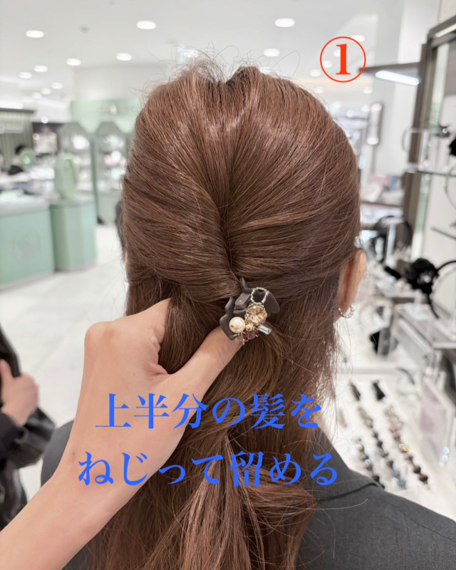 ねじった形がキレイな、ハーフアップアレンジのご紹介です☺️