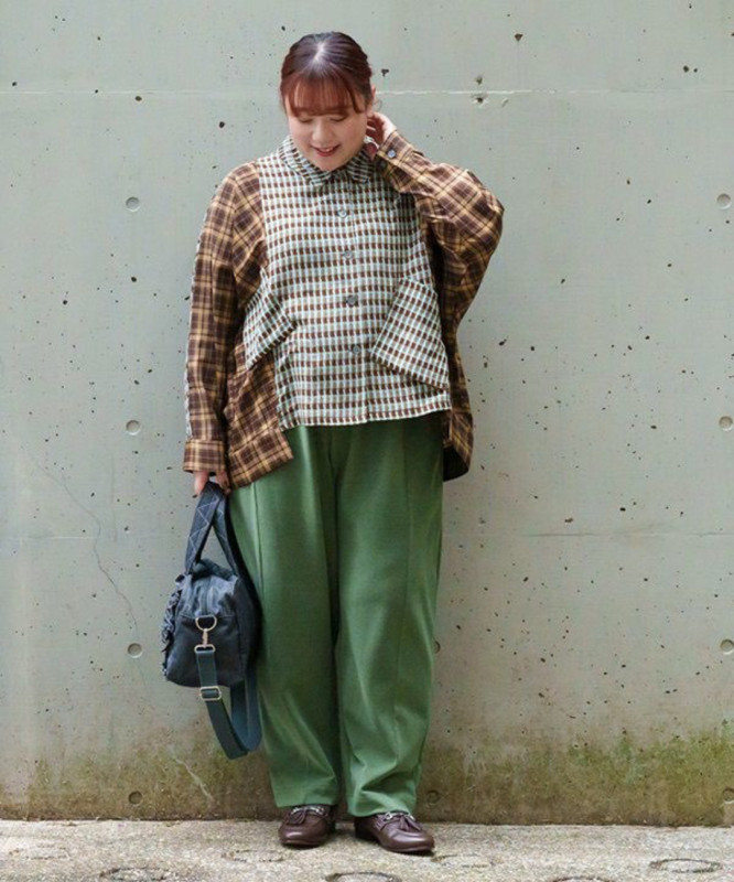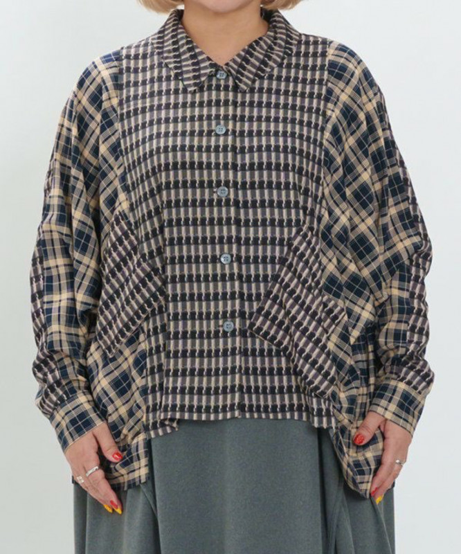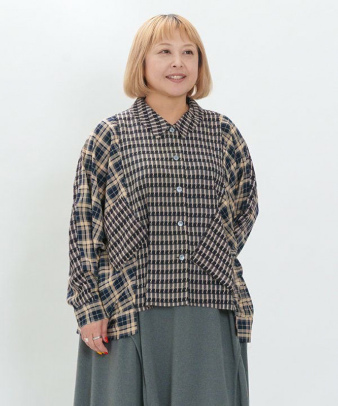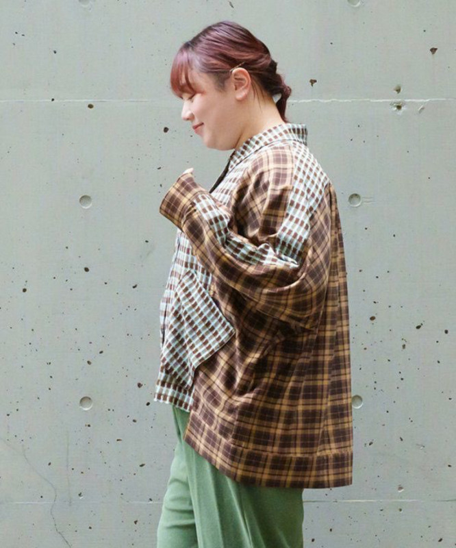 前身頃に大小異なる斜めポケットを左右非対称に配置し、さりげない遊び心をプラスしています🥰
